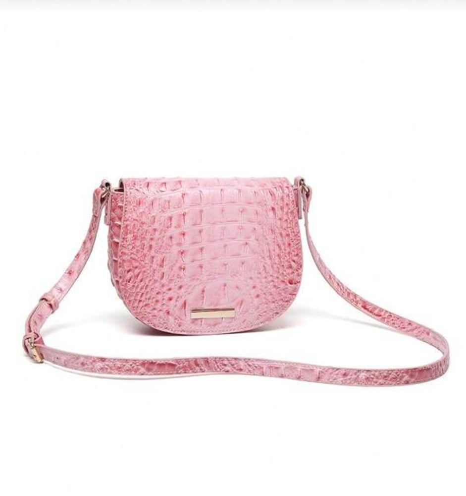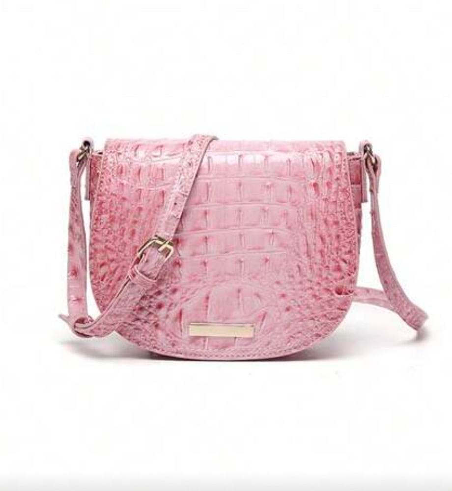 Pink crocodile cross over bag